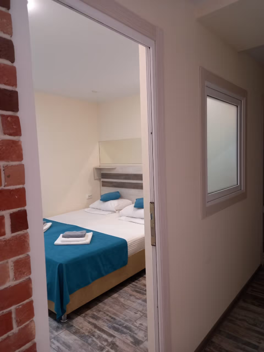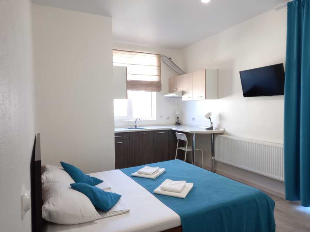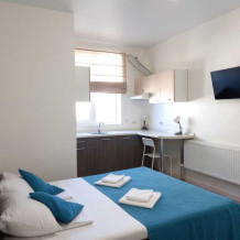 Двухкомнатные апартаменты рассчитаны на 2 основных места (две односпальные кровати) и 2 дополнительных места на диване, располагаются на 1 этаже отдельно стоящего корпуса. Общая площадь – 30 кв.м.