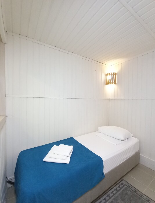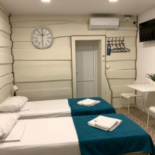 Стилизованный номер рассчитан на 4 основных места, располагаются на цокольном этаже. В номере 2 смежные комнаты, в каждой по 2 раздельные кровати. В номере отсутствуют окна. В общем пользовании на этажах имеется кулер с горячей и холодной водой, микроволновая печь, утюг и гладильная доска.