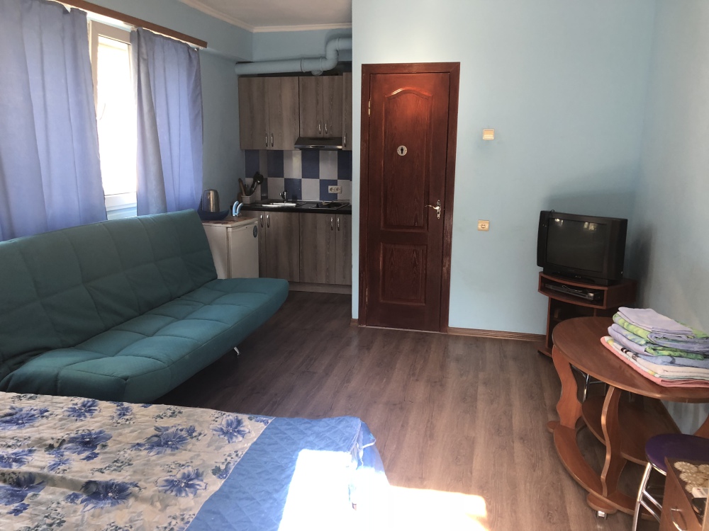 Предлагаем Вам однокомнатные комфортные номера с кухнями в гостевом доме «Полина». В каждом номере имеются: санузел, встроенная кухня, кондиционер,холодильник, wi-fi, кабельное телевидение, новая мебель, горячая вода постоянно.