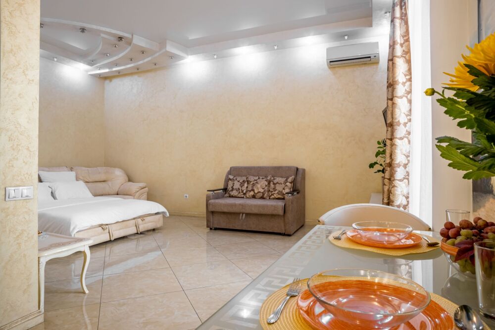 Во-первых, это локация - расположена она напротив Главпочтамта, Набережная и Приморский бульвар в 10 минутах ходьбы, супермаркет и столовая в 5 минутах, рядом музеи и три главные площади города - Лазарева, Нахимова и Ушакова.