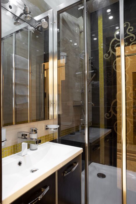 В-четвёртых, это удобства в самой квартире , большая кухня с встроенными посудомоечной и стиральной машинками. Электрическая духовка с конвенцией и грилем , тёплые полы по всей жилой площади, АГВ (вы сами регулируете температуру в помещении ) , тропический душ и прочие технологические прелести современного жилья, кондиционер.
