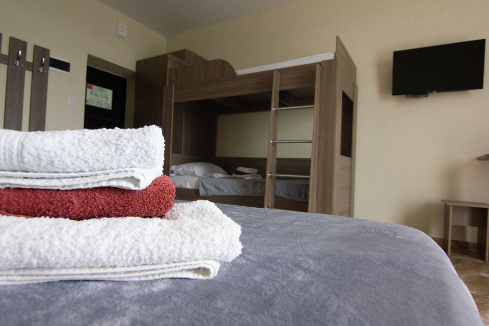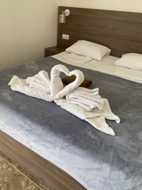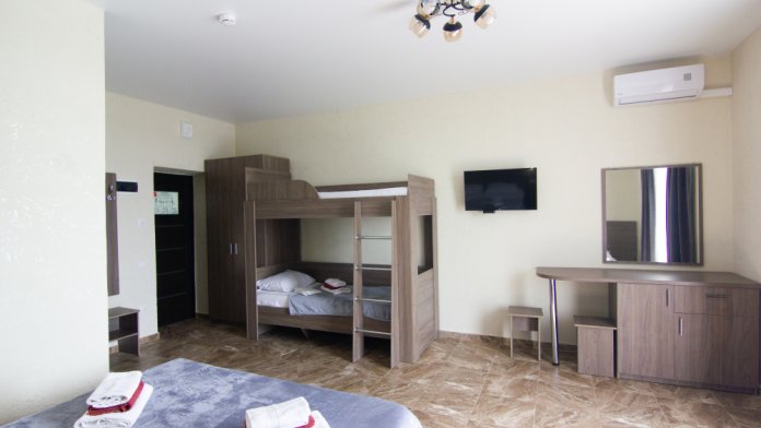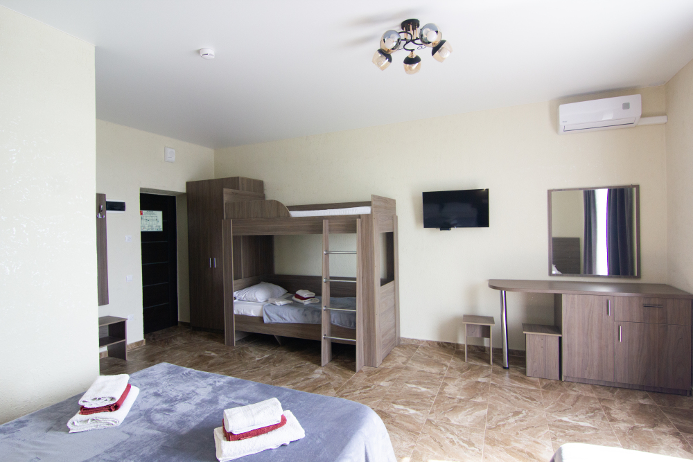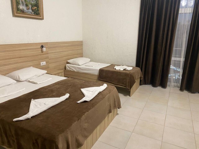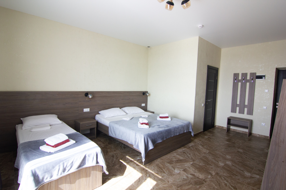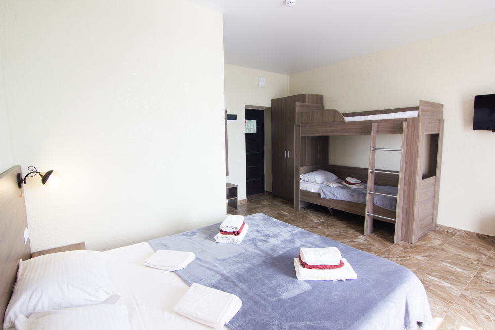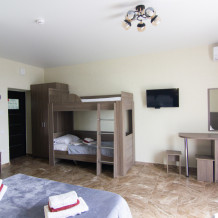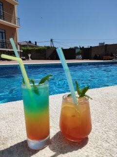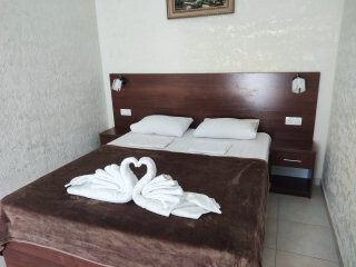 Вы можете снять уютные, чистые, комфортные номера со всеми удобствами. На закрытой территории есть открытый бассейн, парковка, зона отдыха с мангалом. Также к Вашим услугам гладильные принадлежности, беспроводной интернет, а также столовая, где Вы сможете отведать вкусные домашние блюда.