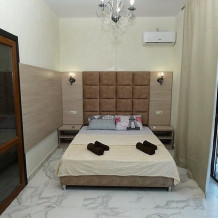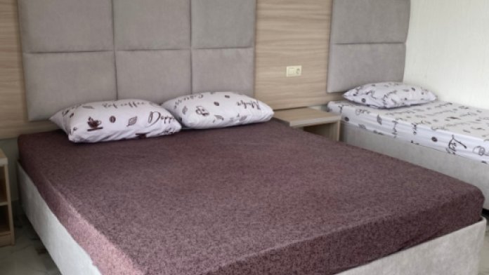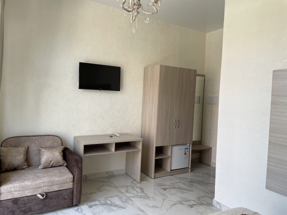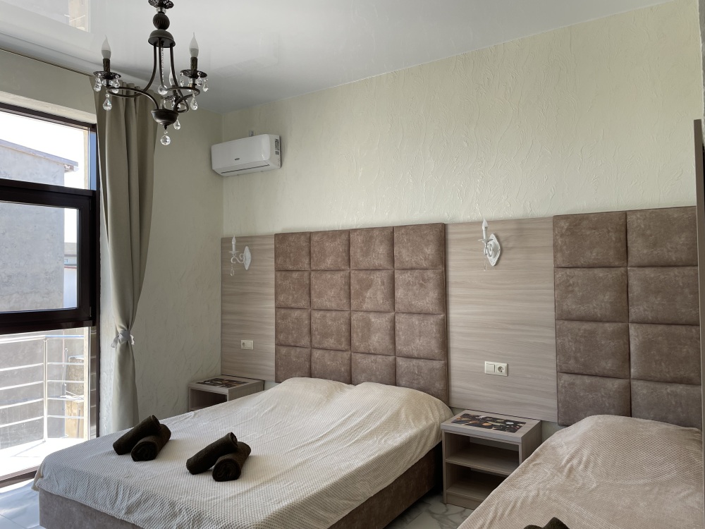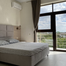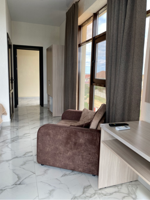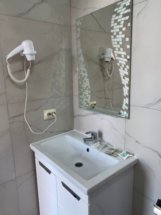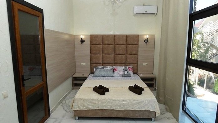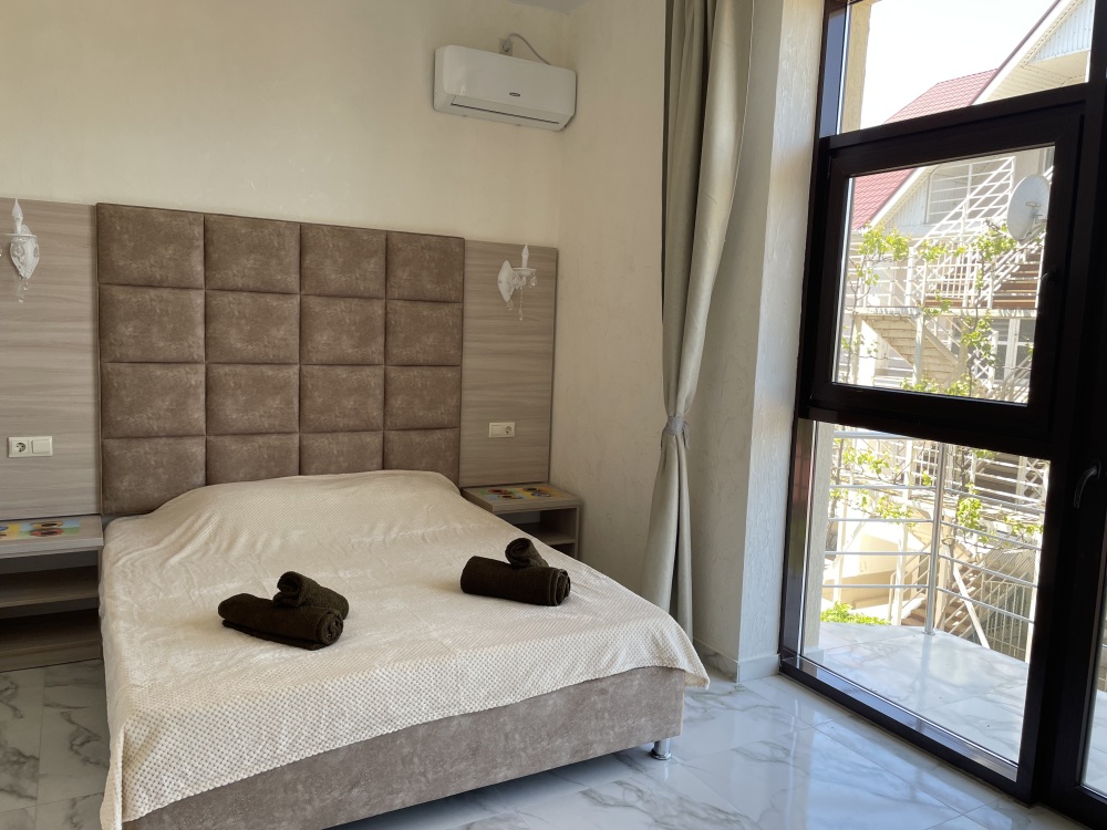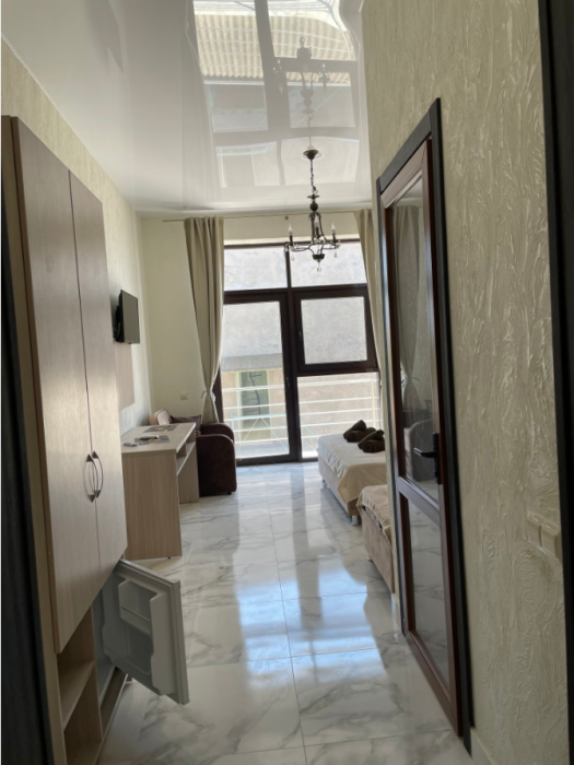 Гостевой дом «Альянс» построен 2021 году, есть большой уютный ресепшн, просторная столовая на 40 посадочных мест с панорамными окнами с выходом на улицу. Все комнаты с новым дизайном, размером 20-30 кв м. Все номера оснащены телевизором смарт тв, кондиционером, холодильником, шкафом, зеркалом, тумбочками. Также в номерах есть свой санузел: раковина, туалет, душевая кабина, фен, туалетная бумага, полотенце.