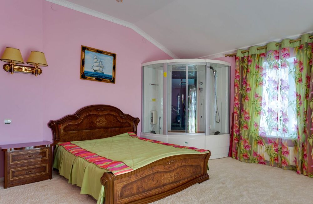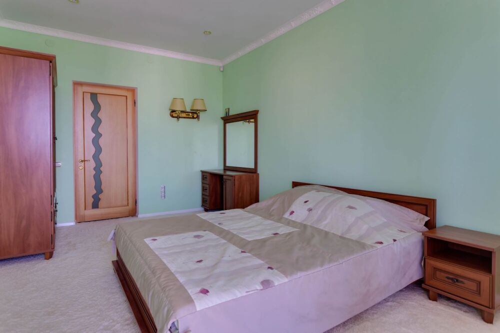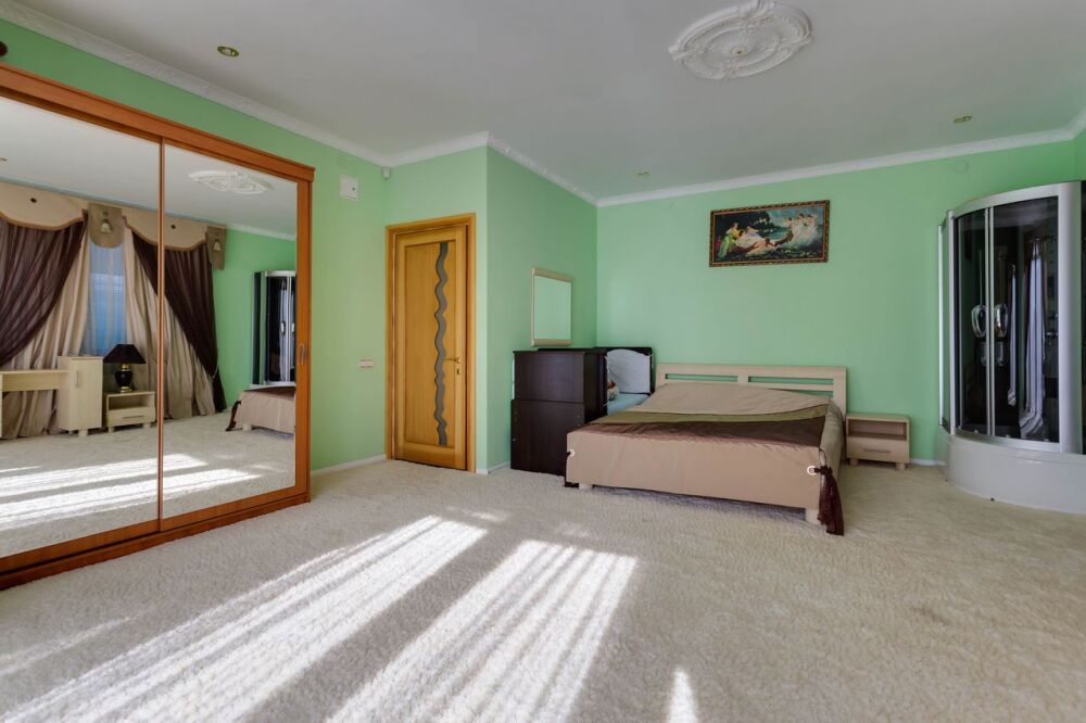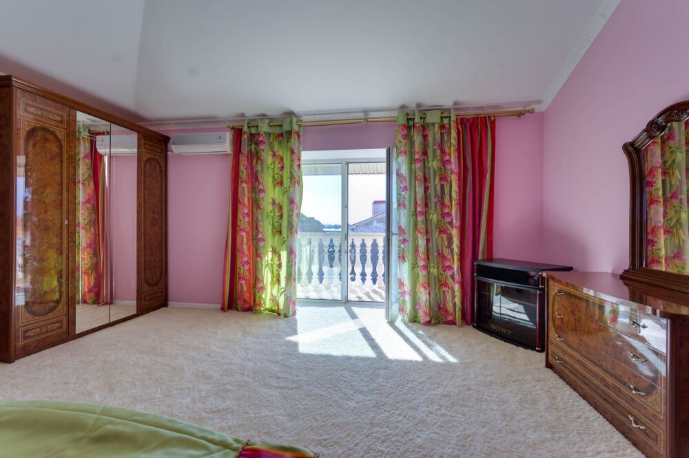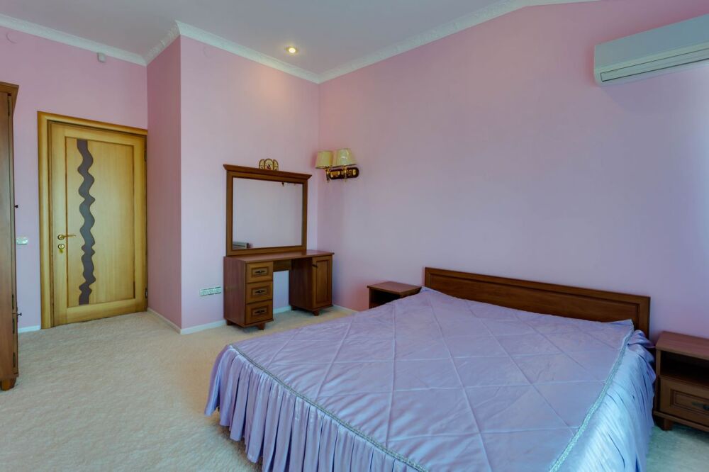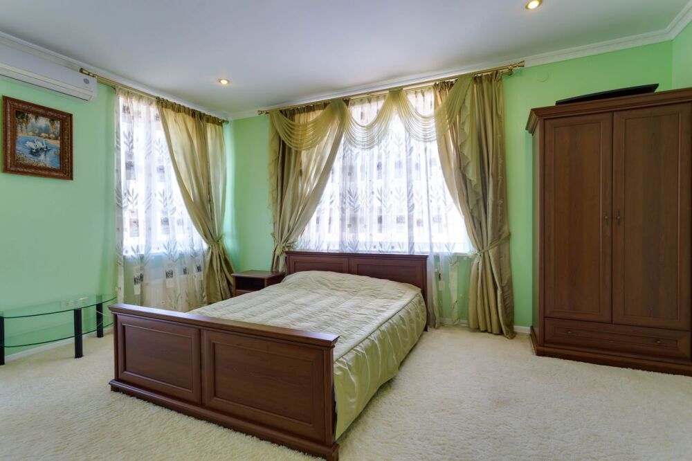 На трех этажах дома может разместиться большая компания, а восемь уютных спален обеспечат спокойных и комфортный отдых. Здесь будет удобно и взрослым, для которых предусмотрены большие двуспальные кровати, и малышам, для которых в спальне можно установить детскую кроватку.