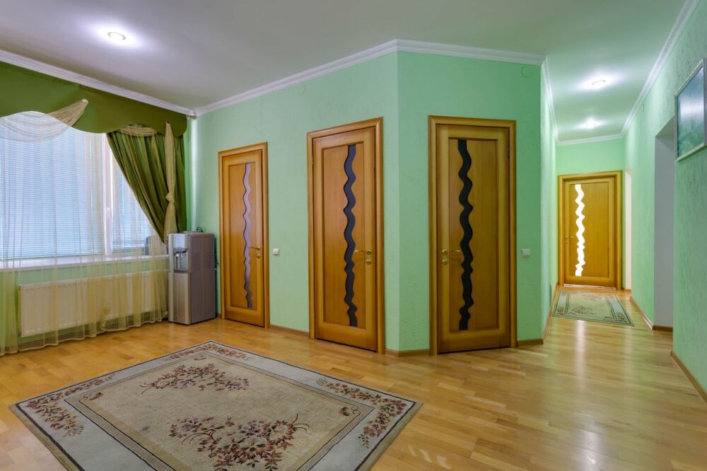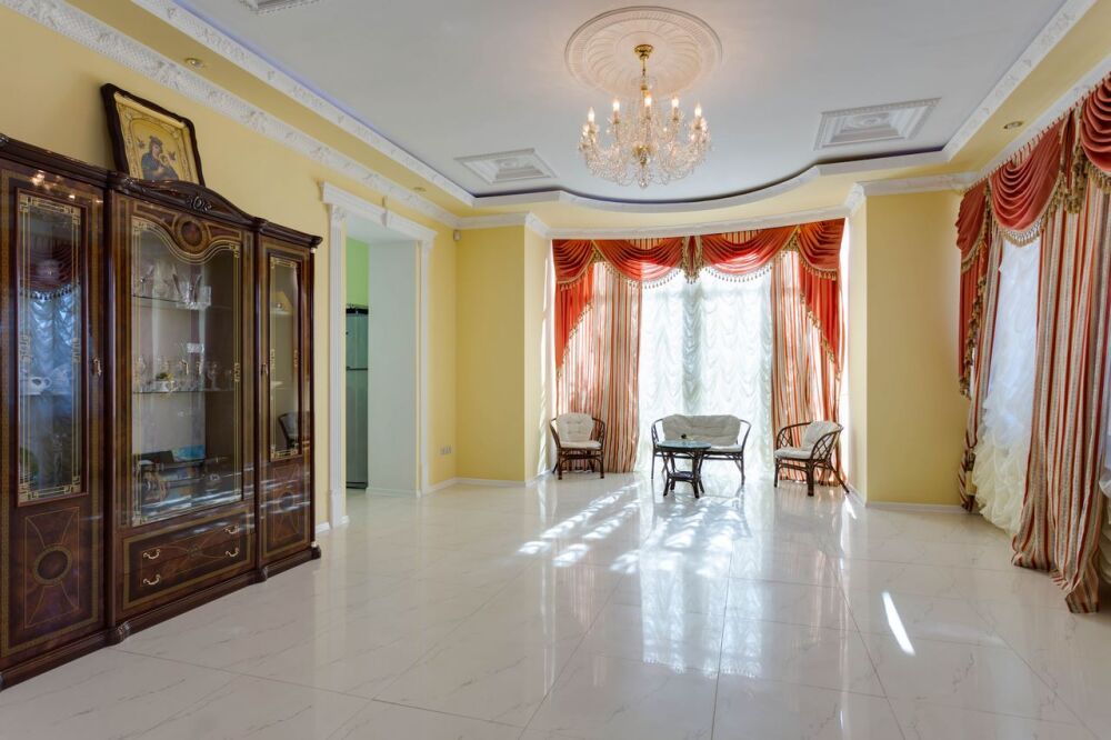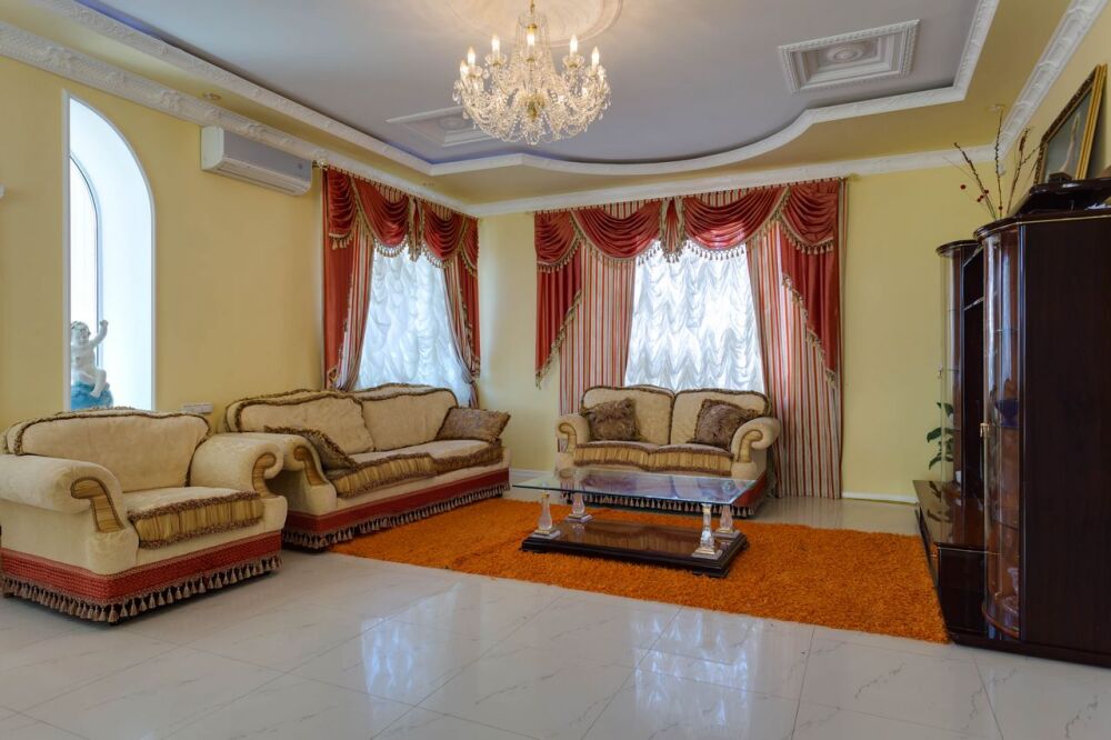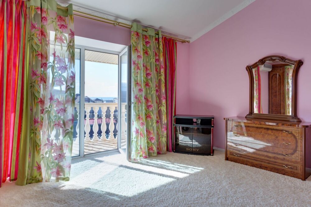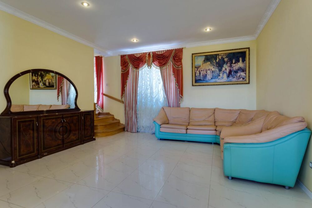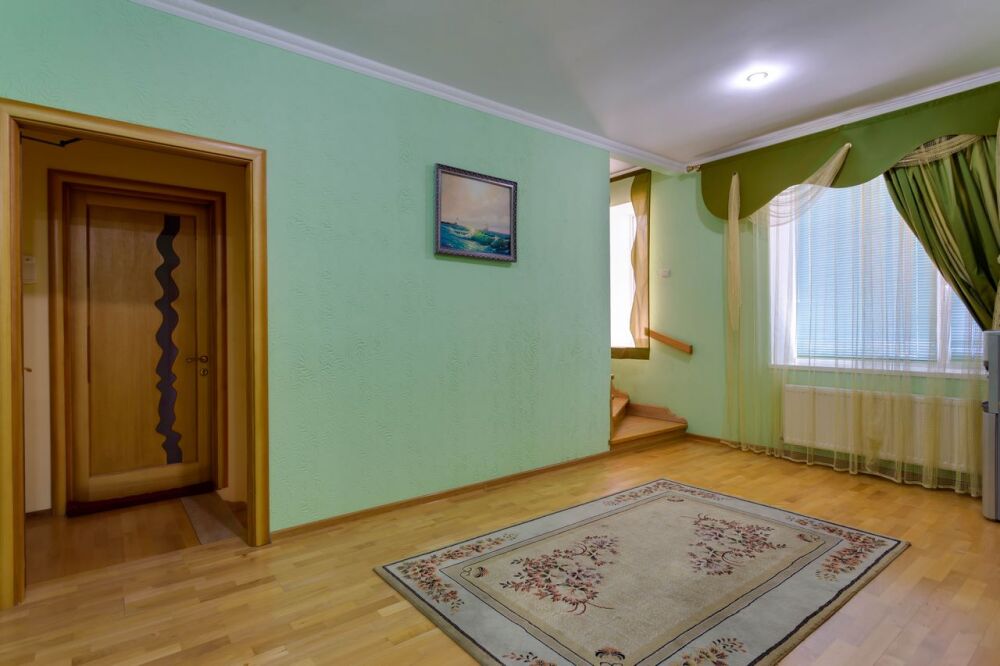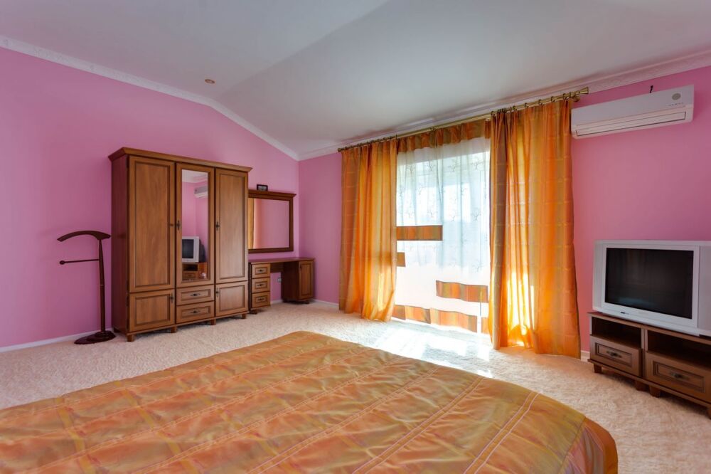 На трех этажах дома может разместиться большая компания, а восемь уютных спален обеспечат спокойных и комфортный отдых. Здесь будет удобно и взрослым, для которых предусмотрены большие двуспальные кровати, и малышам, для которых в спальне можно установить детскую кроватку.