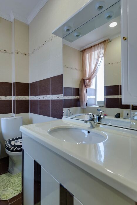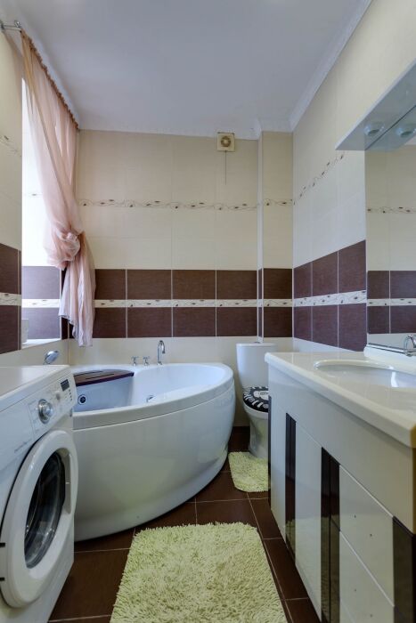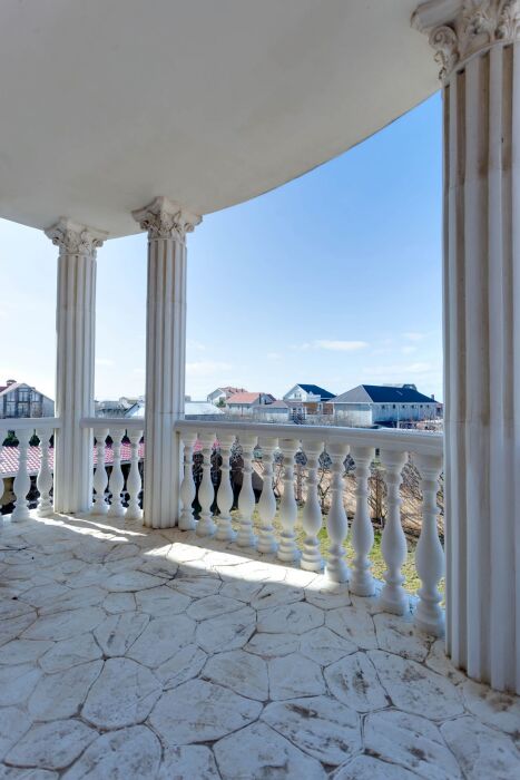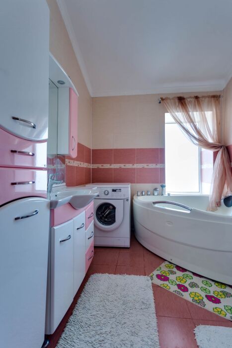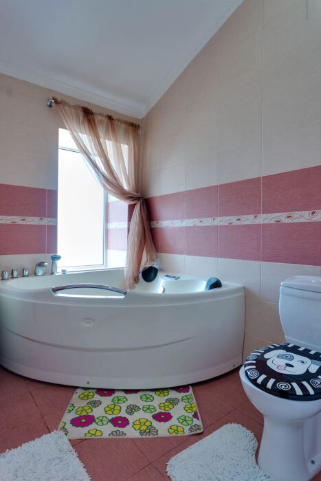 В доме шесть санузлов, две стиральных машинки, гладильная комната, большая кухня со всем необходимым для приготовления, в кухне 2 детских стульчика для кормления. Из 6 спальных комнат есть выход на балкон с видом на море. На всей территории дома безлимитный Wi-Fi интернет.
