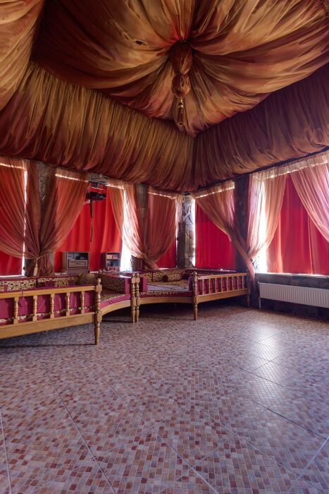 После экскурсионных поездок и пляжных развлечений на Вилле можно спокойно отдохнуть в зоне релакса возле бассейна, принимая солнечный ванны на удобных шезлонгах. Кино-зона оформлена в восточном стиле «чайхоны», здесь гости смогут провести прекрасно время за просмотром фильмов из нашей коллекции DVD фильмов и мультиков.