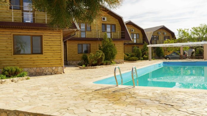 В комплексе для проживания доступны отдельные коттеджи, коттеджи с двухкомнатными и однокомнатными номерами и гостиница. Для Вашего удобства на выбор мы предоставляем большое количество не только номеров на территории отеля, но и отдельных коттеджей, которые можно арендовать. Все номера, со всеми удобствами, отдельной душевой комнатой и своей кухней. В каждом номере Вас будут радовать стабильный Wi-Fi, приятный и качественный ремонт, своя кухня. Более того, к Вашим услугам несколько бассейнов на территории, расположенные посреди огромного зелёного двора. Так как бассейны наполняются морской водой Вы всегда сможете насладиться купанием в соленой воде, даже не спускаясь в море.