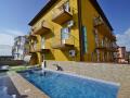 Превосходный уютный отель! Внутреннее убранство и кухня создают атмосферу домашнего уюта, где используются только качественные продукты. В номере имеется все необходимое: холодильник, кондиционер, шкаф для одежды. На каждом этаже есть кулер с горячей и холодной водой, а также гладильная доска с утюгом. Приятным сюрпризом были наличие кувшина, кружек и посуды для фруктов в номере. Разрешено проживание с животными (необходимо согласование заранее). Территория отеля ухоженная, с цветущими растениями, а вечерние лампочки создают особенно приятную атмосферу. Во дворе расположен бассейн, шезлонги и столики, что позволяет завтракать или обедать на свежем воздухе. Отдельная благодарность хозяйке отеля, Наталье! Она всегда готова помочь и открыта к любым вопросам и просьбам. До моря всего 10-15 минут пешком, что для нас оказалось вполне комфортно, не создавая ощущения "тюленьего" отдыха.
