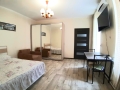 Номер чистый и уютный. На кухне много бытовых мелочей для готовки и поддержания чистоты.Все бытовые приборы исправны. Телевизор не включали. Иногда готовили завтраки. Есть прачечная, полотенца стирали сами, замены за 10 дней пребывания не было. Но далековато от пляжей. Сначала ходили пешком, потом подъезжали до набережной на троллейбусе. Удобно, что рядом расположен супермаркет "Яблоко". Один минус- крутой подъем к дому. В целом - понравилось.